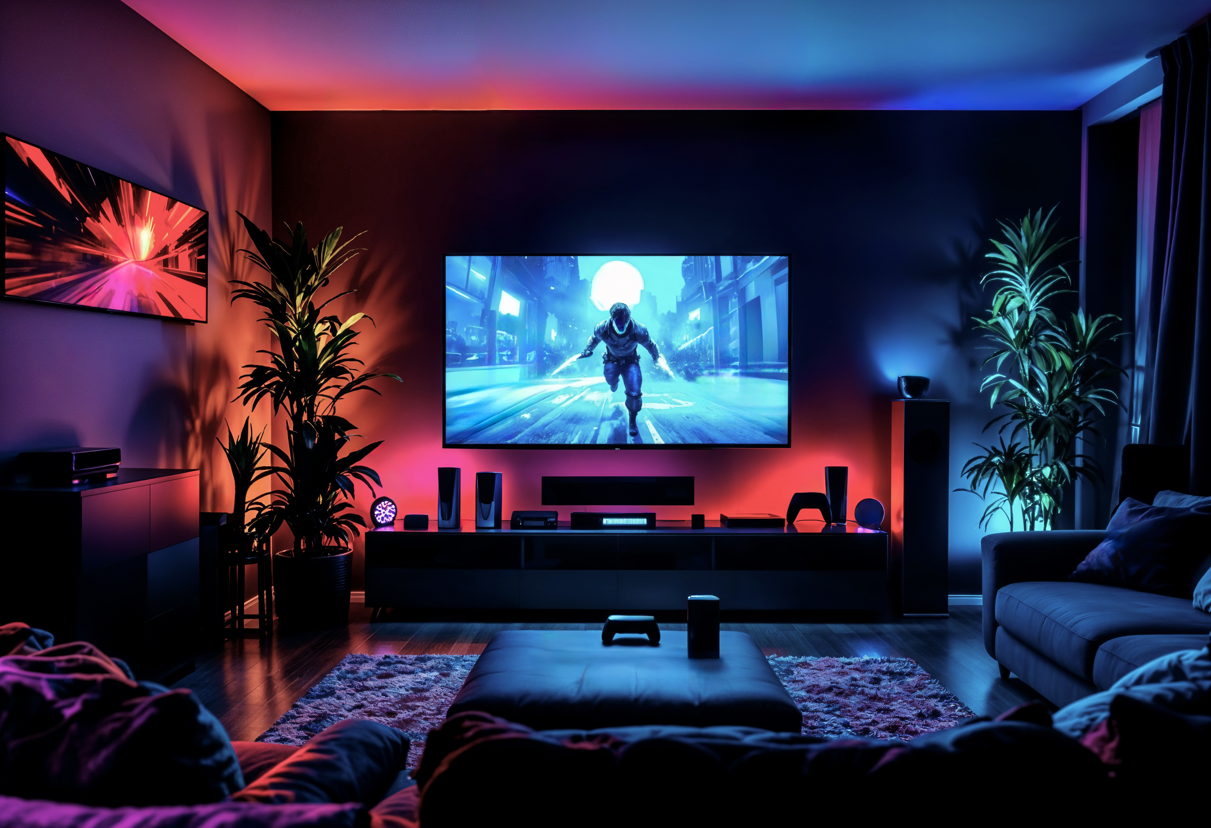 Lights dim. Curtains close. AC drops. Cinema screen descends. One command transforms the entire room.
